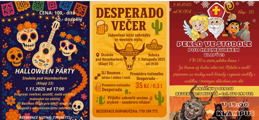 Podzimní sezóna u nás bude plná akcí, smíchu i dobrot z farmy. Přijďte si užít atmosféru Stodoly pod Hazmburkem naplno!
