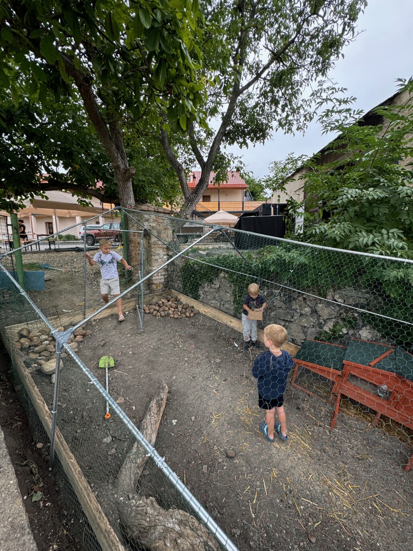 - venku Jsme udělali kontaktní ohrádku, kde si mohou děti hrát se zvířátky